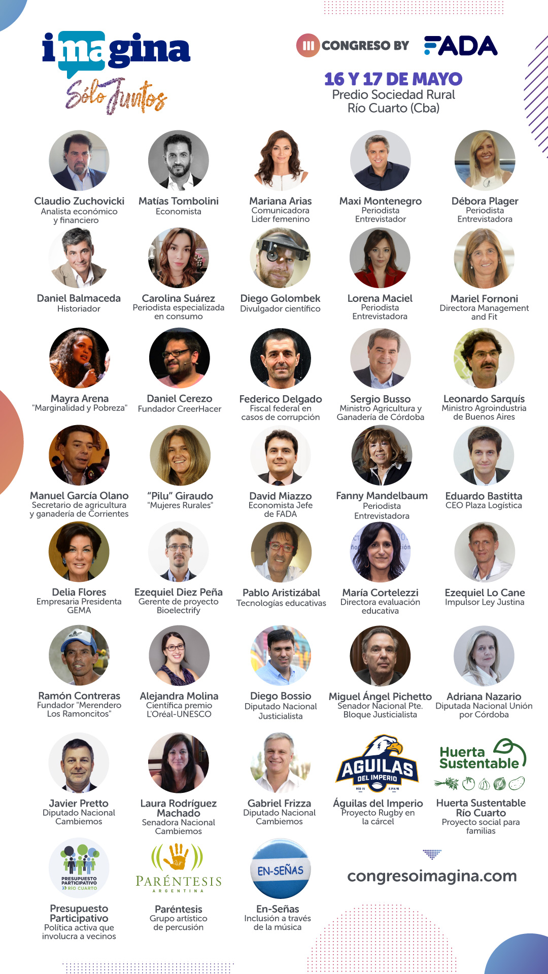 Los próximos 16 y 17 de mayo, en la Sociedad Rural de Río Cuarto, Córdoba, la Fundación Agropecuaria para el Desarrollo de Argentina (FADA) realizará su III Congreso Imagina, bajo el lema “Sólo Juntos“.