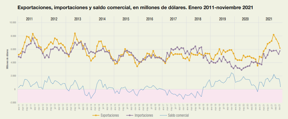 De esta manera, el saldo comercial fue positivo, pero de apenas 397 millones de dólares.