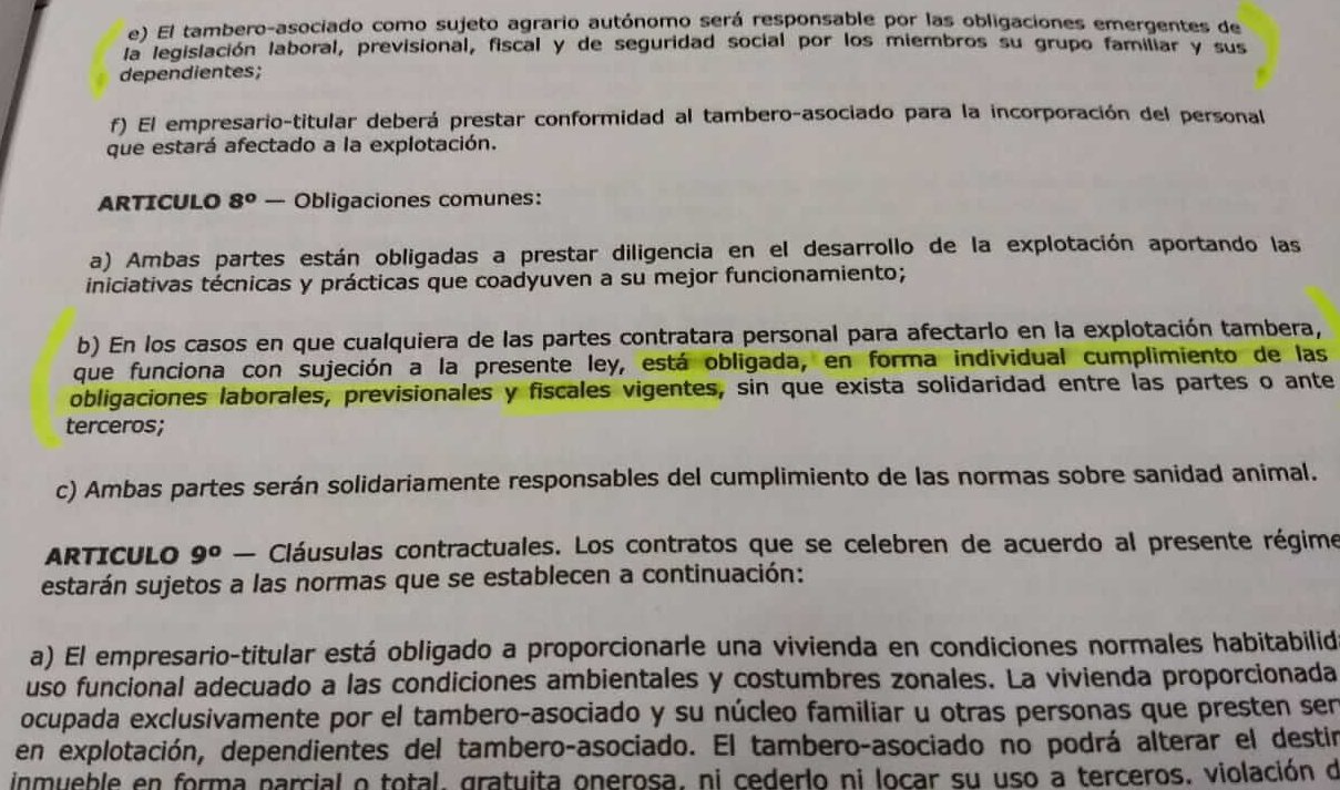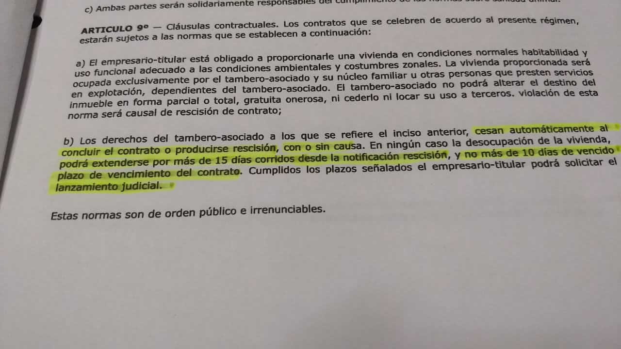 “Lo importante es que se reduzca ese plazo de 30 días. A más tardar, en cinco días el tambero se tiene que ir. A esto, ahora, se sumó el tema de los menores. Vienen autoridades y no dejan que esa persona salga hasta que consiga otro trabajo o hasta que los menores sean mayores. Es una locura”, expresa.