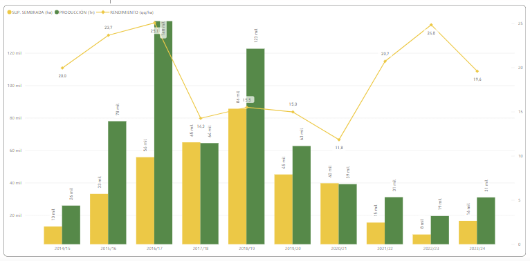 Estas cifras representan un incremento con respecto al ciclo 2023/24 de 51% y 15%, respectivamente, aunque se encuentrab por debajo de los promedios habituales para región.