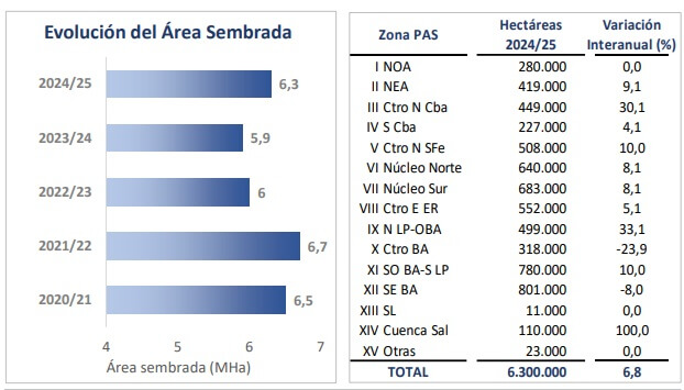 Se sembraron 6,3 MHa, un 7 % más que la campaña anterior.