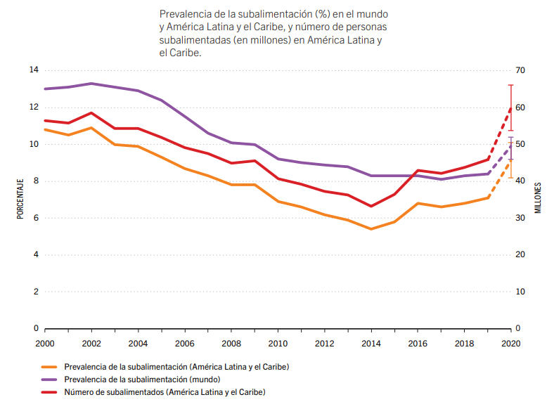 Se registró un aumento del 30% en el número de personas que padecen hambre entre 2019 y 2020, es decir, que 13,8 millones de personas ahora se encuentran frente a este problema estructural para la vida, y donde el total asciende a casi 60 millones de personas para la región.