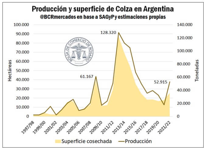“Sin embargo, merece la pena destacar que en los picos productivos de la colza argentina (2012-2016), además del incremento productivo de estas dos provincias, se registraban crecientes niveles de producción de colza en Santa Fe y Córdoba”, puntualizaron.