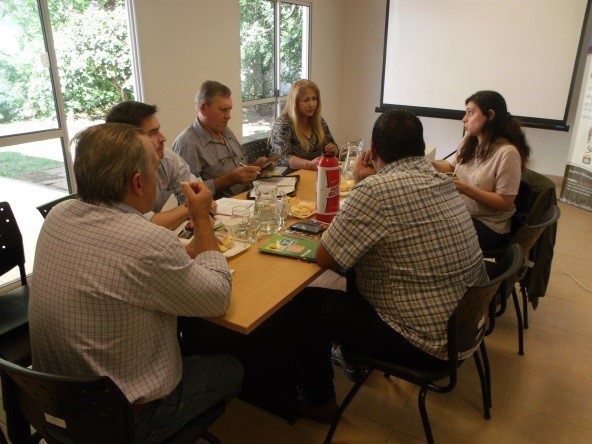 Durante el encuentro, se trabajó sobre temas vinculados a los riesgos de aplicación de agroquímicos en forma manual o mecánica, elementos de protección personal, buenas prácticas biomecánicas y sus riesgos, entre otros.