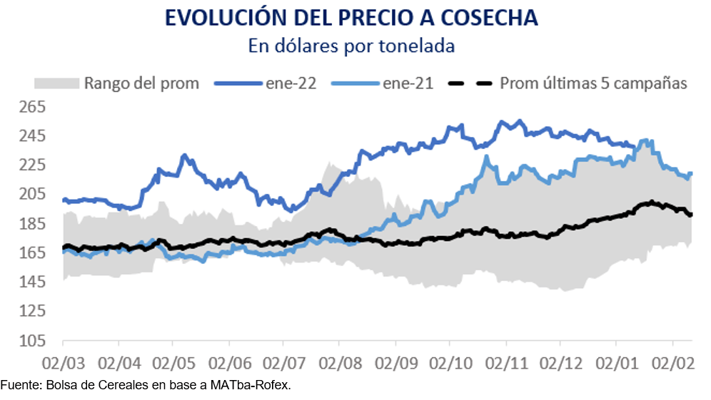 De acuerdo con la Bolsa, esto ocurrió “debido a una favorable evolución del cultivo en respuesta a la fertilización, y los registros de precipitaciones que, aunque escasos, se distribuyeron oportunamente en tiempo y espacio alrededor de los momentos críticos del ciclo”.