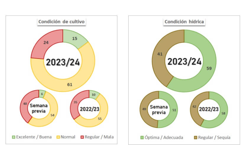 “La llegada de precipitaciones significativas en el área agrícola permitió recuperar el estado de los planteos afectados por las heladas días atrás, mejorando la condición de cultivo”, señaló.