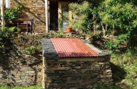 El depósito se sitúa justo debajo del inodoro, en un recinto de piedra de esquisto. Deberán mantenerse las condiciones óptimas de temperatura para las lombrices (13 grados en invierno y 27 en verano).