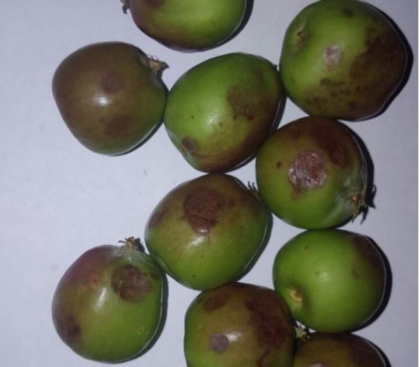 “Cayó del tamaño de una bola de naftalina. No hemos visto hojas ni ramas rotas, pero está claro que esa piedra va a generar un daño en la fruta que está en pleno proceso de crecimiento”, expresó un productor de la zona de J.J.Gómez al diario ANR.