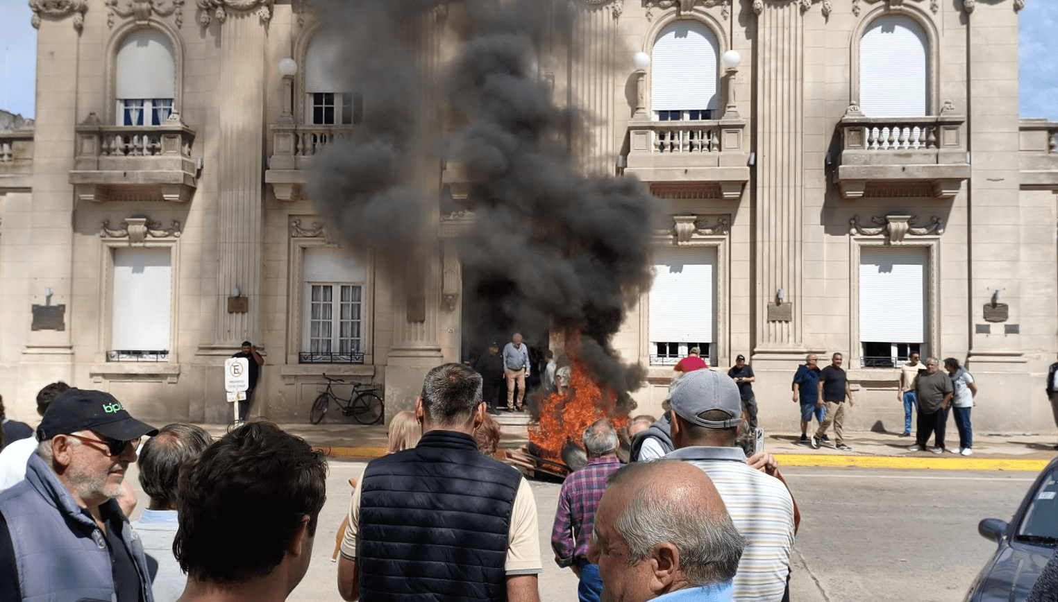 El mensaje, así simple, conciso y contundente, fue escrito por la productora y dirigente del ruralismo Patricia Gorza, acompañado de una fuerte imagen: gomas quemándose frente a un edificio municipal.