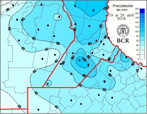 En relación a los granos gruesos, el GEA detalló que “después de unos largos meses sin lluvias, las precipitaciones aparecieron, pero en plena cosecha gruesa. Si bien los milímetros son esenciales para la siembra de trigo, traen demoras en las tareas de recolección y dificultades en el tránsito de algunos caminos. Las ráfagas de viento que han acompañado a las tormentas han sido tan intensas que han afectado a numerosos lotes de maíz. Las lluvias de la última semana dejaron acumulados por encima de los 60 mm en el 45% de la región núcleo. Chovet midió un total semanal de 117 mm e Irigoyen 107 mm. En Chovet y Ramallo las lluvias de abril ya superan los 190 mm. Los pronósticos a corto plazo anuncian lluvias intermitentes durante los próximos días, mejorando a partir del martes 1ro de mayo”.