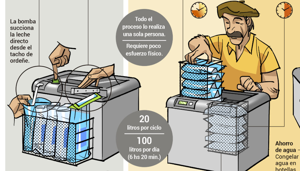 El equipo envasa leche fluida y la pasteuriza, garantizando las condiciones óptimas de inocuidad para su comercialización directa. El equipo permite acortar la cadena de producción, promover el consumo de producción local. Como innovación brinda la posibilidad de formalizar la producción láctea regional y asegurar la alimentación saludable.