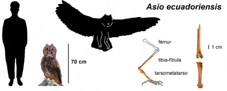 Una especie de lechuza gigante (Asio ecuadoriensis) de mas de 40.000 años de antigüedad fue hallada a 2.800 metros sobre el nivel del mar en la provincia de Chimborazo, en la Cordillera de los Andes, por investigadores argentinos y ecuatorianos.
