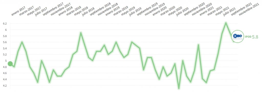– IPOD ganadero: subió 0,6% de 2,91 veces a 2,92 veces. El IPOD ganadero resultó 55,6% más bajo que el IPOD frutihortícola.