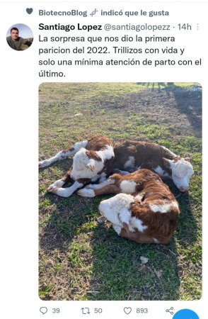 Por el alumbramiento de tres terneros, López decidió compartir el buen momento en la red social Twitter, publicación a la que muchos usuarios decidieron responder con un saludo positivo y acompañar su alegría por la buena noticia.