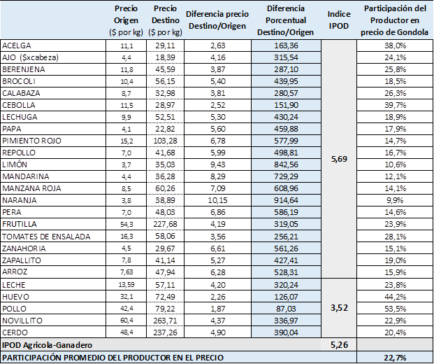 La participación del productor en el precio final se recuperó 3,2%, aunque sigue igualmente baja, en 22,7% promedio.