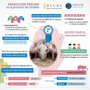 Córdoba se erige como la segunda productora porcina a nivel nacional con una participación del 26% de los capones enviados a faena. Según un informe de la Bolsa de Cereales de Córdoba (BCCBA), en 2017 se producirían 1,6 millones de capones, permitiendo cubrir el consumo de más de 10 millones de argentinos y hoy, el contexto ofrece una gran oportunidad para el sector en la provincia.