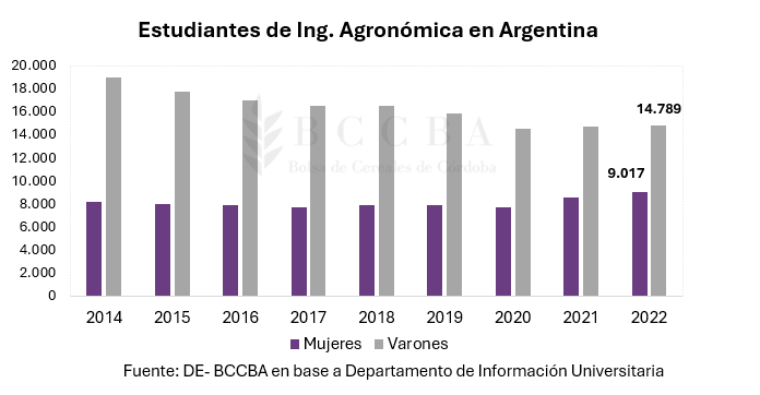 En ese ejercicio, había más de 9.000 mujeres estudiando ingeniería agronómica en Argentina, la mayor cifra registrada al menos en los últimos años.