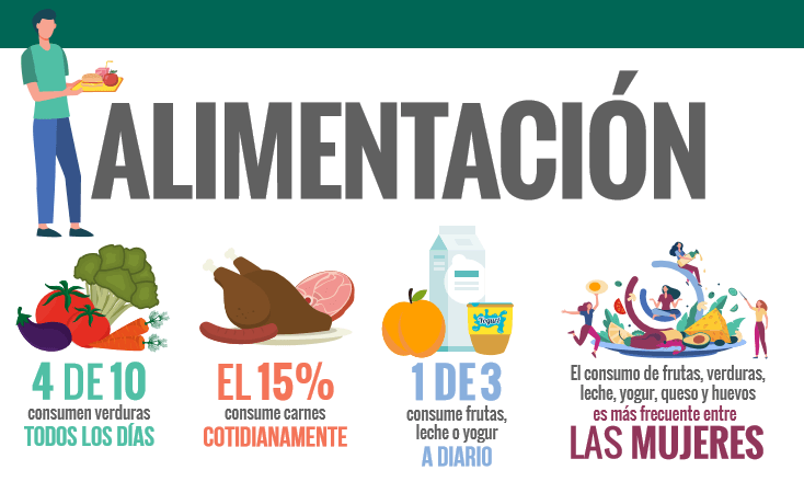Si se mira la comparación entre hombre y mujeres, el grupo femenino come más frutas, verduras, leche, yogur, queso, carne de pollo, carne de pescado, y huevos que el masculino.
