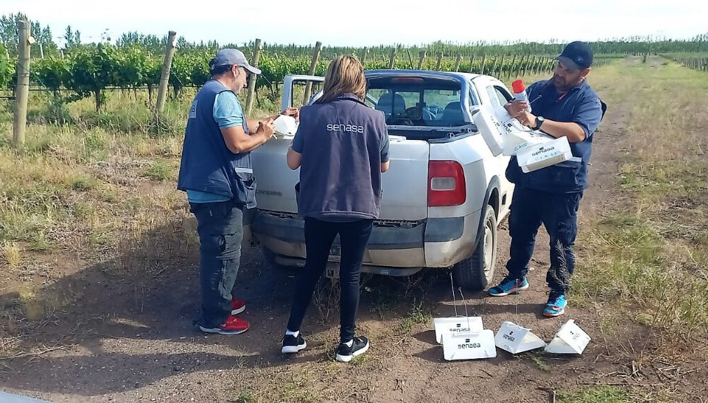 El trabajo a campo forma parte de las acciones fitosanitarias del Programa Nacional de Prevención y Erradicación de Lobesia botrana. Está a cargo de agentes del Centro Regional Cuyo del Senasa, para garantizar que la producción de vid se encuentre en óptimas condiciones para efectuar la cosecha.