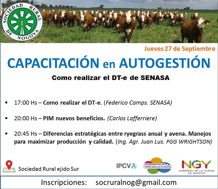 El curso se dictará el día jueves 27 de septiembre desde las 17 en las instalaciones del éjido sur de la Sociedad Rural de Nogoyá, y está destinado a socios y productores en general.