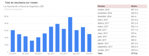 En 2016 Rusia importó 180.000 millones de dólares en 2016, y en lo que va del 2017 gastó 775 millones de dólares solamente en el comercio bilateral con la Argentina.