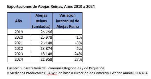 En comparación, la cifra actual implica un 89% más que todo lo exportado en 2023, cuando las ventas sumaron 18.148 abejas reinas.