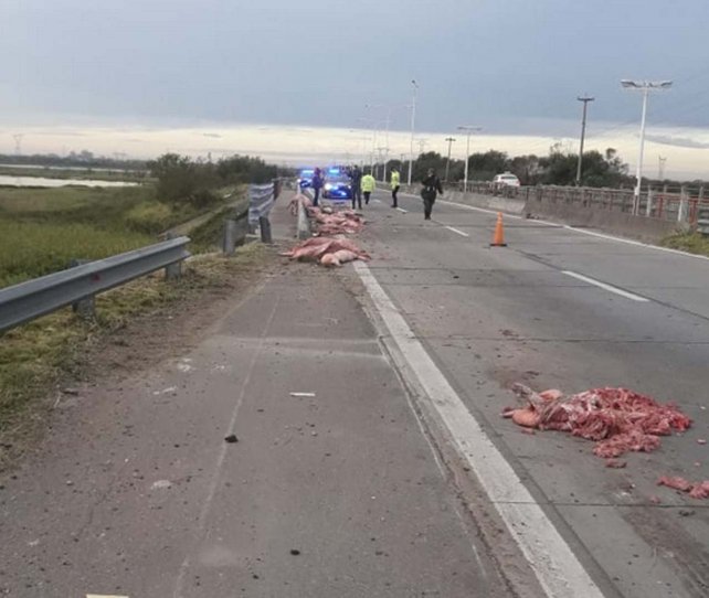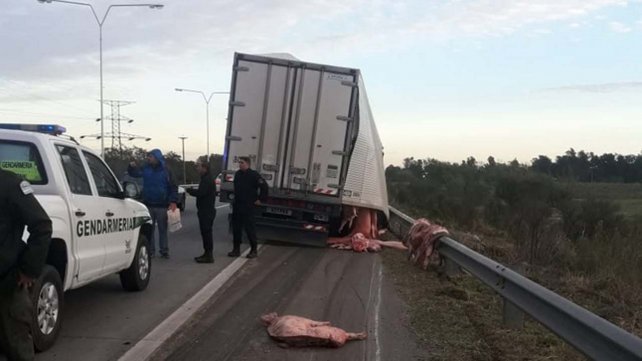 Tras la pérdida de la carga, la Policía Vial de Santa Fe y Gendarmería Nacional iniciaron un operativo de tránsito y permitieron que la población se llevara la carne para consumo.