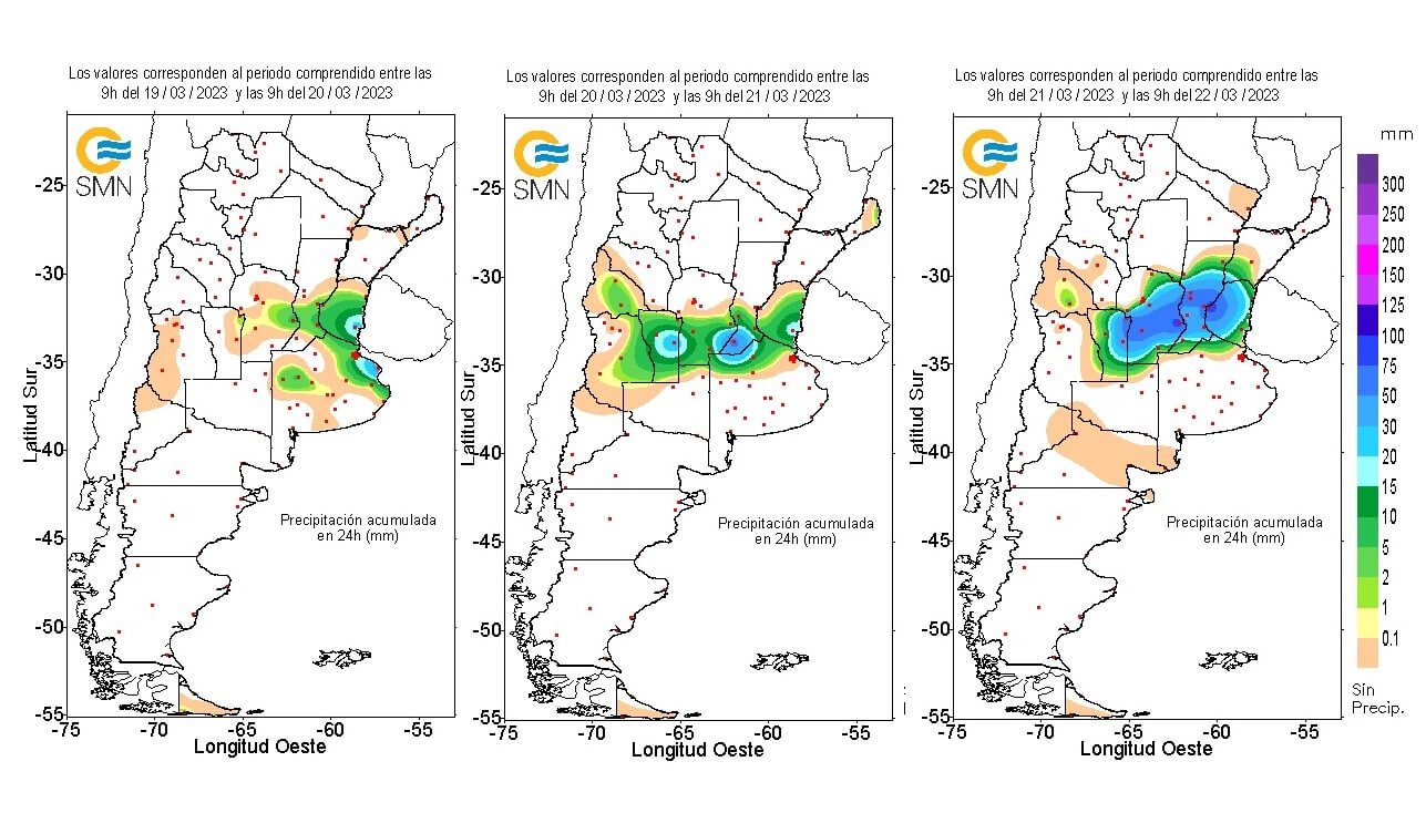 En los mapas se observa, además, que las zonas favorecidas fueron varias claves para la producción agrícola nacional y que venían siendo de las más castigadas por la sequía y las olas de calor, como el norte de Buenos Aires, Santa Fe, Entre Ríos y sudeste de Córdoba.