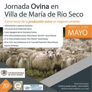 La Sociedad Rural de Jesús María y la Cámara de Productores Ovinos de la provincia de Córdoba organizaron una jornada de capacitación que se llevará a cabo este martes 23 de mayo a las 10 en Villa de María de Río Seco, en el establecimiento “María Gloria”, propiedad del productor e ingeniero agrónomo Gustavo Ramos.