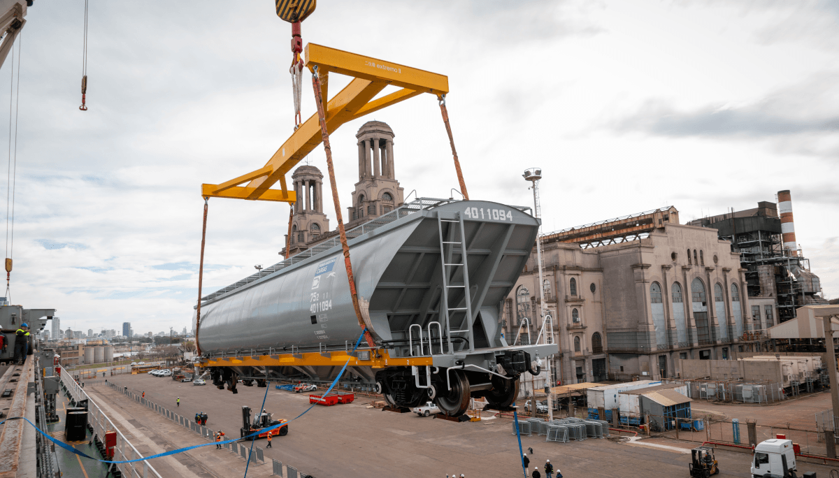 “Las 45 unidades, que tienen una capacidad de carga de 55 toneladas cada una, se destinarán a la línea Belgrano con vistas al tráfico que generará el sector agroindustrial”, resaltó la empresa estatal.