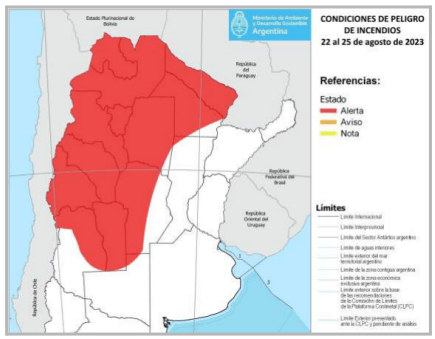 En tanto, el SNMF también redactó este lunes un informe técnico de condiciones de peligro de incendios en el país, con vigencia del 22 al 25 de agosto.