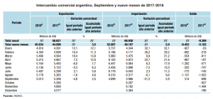El Instituto Nacional de Estadística y Censos (INDEC) dio a conocer su Informe Técnico vol. 2 nº 199 respecto al Intercambio Comercial Argentino. La buena noticia es que por primera vez en los últimos 21 meses, nuestro país cierre un mes (septiembre) con saldo positivo, que fue de 315 millones de dólares.