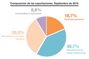 “Las exportaciones, respecto al mismo mes del año anterior, cayeron 4,8%, en términos desestacionalizados variaron 0,2% respecto al mes anterior. Los precios subieron 7,3% y las cantidades cayeron 11,2%. Las exportaciones de productos primarios disminuyeron de manera interanual 32,3%. Las exportaciones de manufacturas de origen agropecuario (MOA) aumentaron 1,2%; las de manufacturas de origen industrial (MOI) decrecieron 4,0%; y las exportaciones de combustibles y energía aumentaron 122,2%”, explica el informe del Instituto.