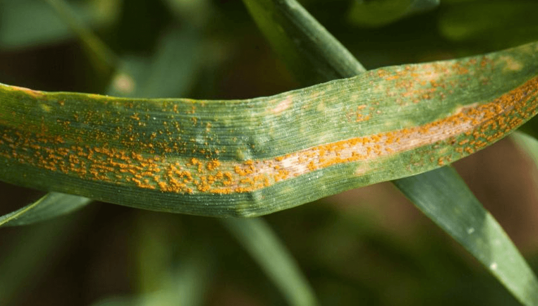 Fundamentalmente, se observaron pústulas de roya anaranjada en los extractos más bajos del cultivo y en algunas hojas aisladas.