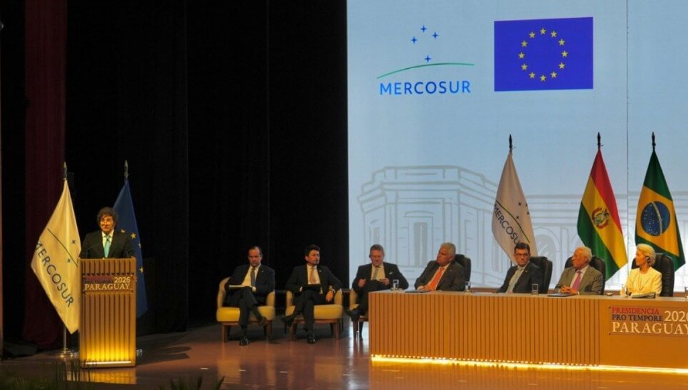 “Tras 25 largos años de negociaciones, firmamos finalmente el acuerdo de libre comercio entre el Mercosur y la Unión Europea, quizás el mayor logro obtenido por el Mercosur desde su creación”, aseguró el Presidente argentino, Javier Milei.