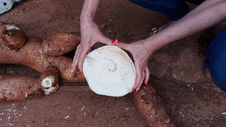 Fernando Oscar Kummritz es un productor de la localidad de Campo Viera, Misiones, que cosechó una mandioca gigante en su campo.