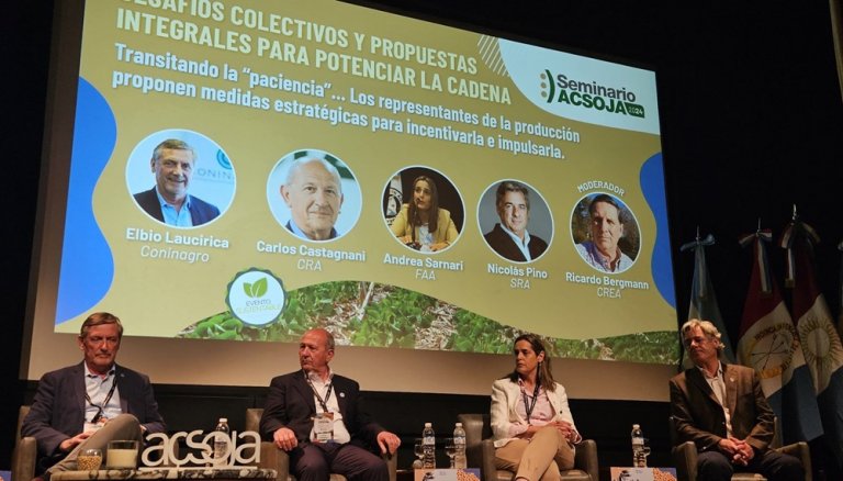 Autoridades de las entidades que integran la Mesa de Enlace participaron del seminario de Acsoja. Además de los reclamos de corto plazo, como las retenciones y la normativa europea sobre deforestación, pusieron el foco en la falta de previsibilidad.