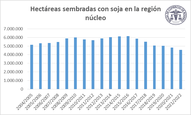 Un análisis preliminar de la Bolsa de Comercio indica, con alta probabilidad, que “el hectareaje de la soja 2021/22 sería el más bajo de la serie y por lejos”.