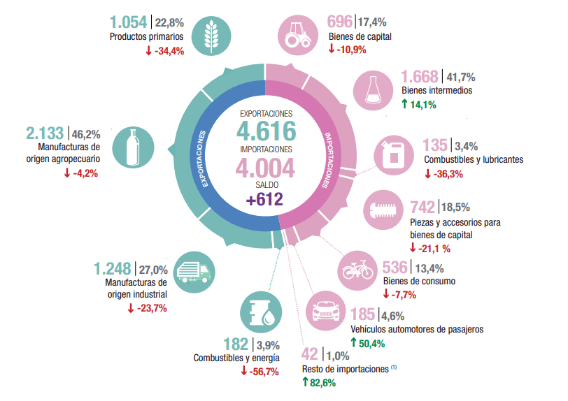En detalle, la caída de las ventas al exterior de los productos primarios fue de 34,4% y para el caso de las Manufacturas de origen agropecuario la baja fue de 4,2% comparado a igual período del año pasado.