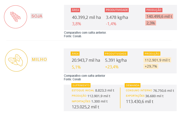 “Las expectativas de producción en el Centro Oeste contribuyeron a mantener la expectativa de crecimiento en la producción de granos, aún con las condiciones climáticas desfavorables en el sur del país, que impactarán en la producción de maíz y soja”, aclara la Conab.