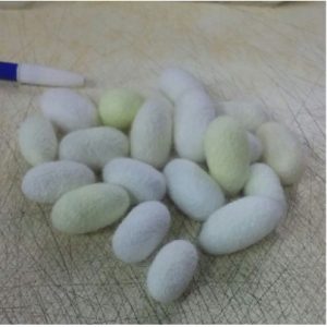 – Los gusanos de seda poseen 2 glándulas sericígenas a ambos lados del cuerpo, donde se sintetizan los componentes que forman la seda. En la quinta edad las glándulas toman un gran desarrollo y al finalizar la misma, comienzan a emitir el filamento para contruir el capullo. Este está construido por un único filamento de seda, que puede medir entre 500 a 1200 metros.