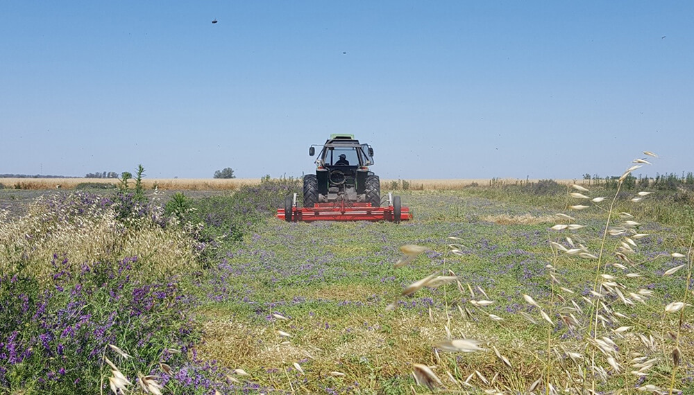 Desde fines del año 2015, se propuso la implementación de un módulo de transición agroecológica extensivo en un sistema mixto (agrícola-ganadero) de 33 hectáreas, en los lotes que limitan con la zona urbana de la localidad. El rediseño del sistema implicó, en primera instancia, la instalación de cortinas forestales mediante la plantación de algarrobos y álamos, más la siembra de un corredor biológico con especies umbelíferas, crucíferas, leguminosas y alforfón.
