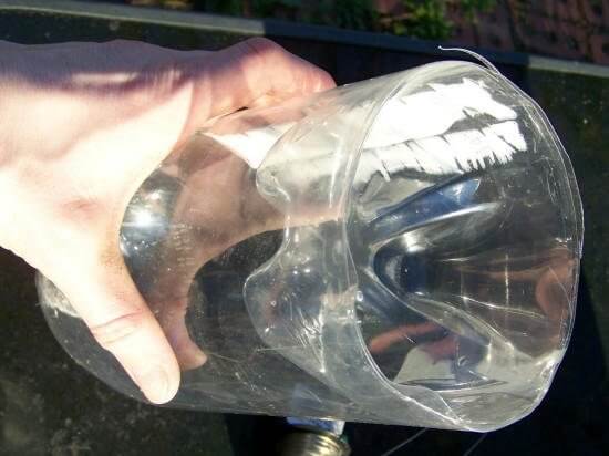 - Cortar la parte de abajo de la botella: hazlo de forma cuidadosa y coloca la parte inferior en el interior de la botella en una posición invertida, debe encajar cómodamente.