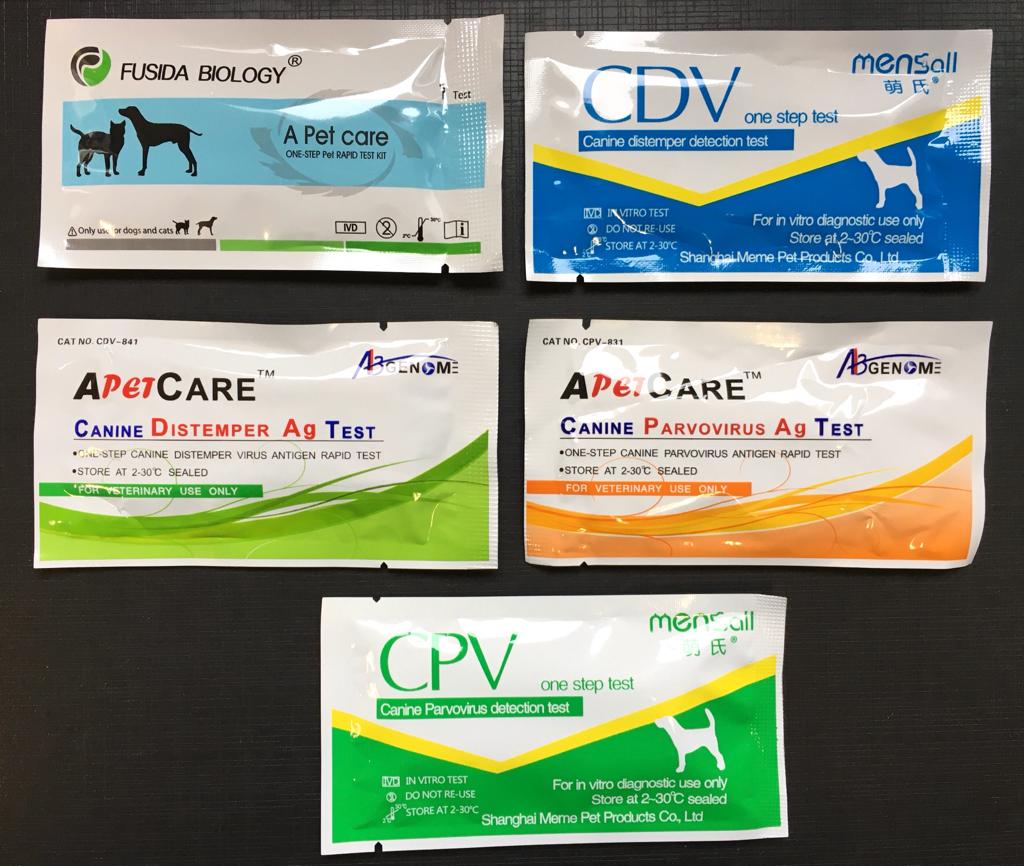 Se trata de Fusida biology, CDV, Apetcare (para distemper y parvovirus) y CPV: todos productos veterinarios sin registro, de origen extranjero, utilizados para el diagnóstico de enfermedades (kits diagnósticos) caninas como leishmaniasis, moquillo o distemper y parvovirus.