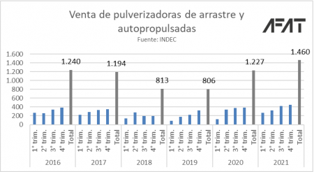 Por su parte, con relación al segmento de pulverizadoras, se registraron ventas de 1.460 unidades en 2021, superando las ventas de los últimos 5 años.