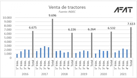 Según la publicación oficial, en el cuarto trimestre de 2021, el total de unidades vendidas de todos los segmentos de maquinaria registraron subas interanuales.
