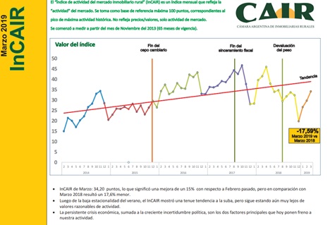 El “Índice de actividad del mercado inmobiliario rural” (InCAIR) es un índice mensual que refleja la actividad del mercado.