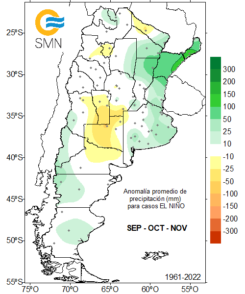 También hay que destacar que las primaveras con El Niño suelen ser más lluviosas en la provincia de Buenos Aires, sur del Litoral y el noroeste de Patagonia.