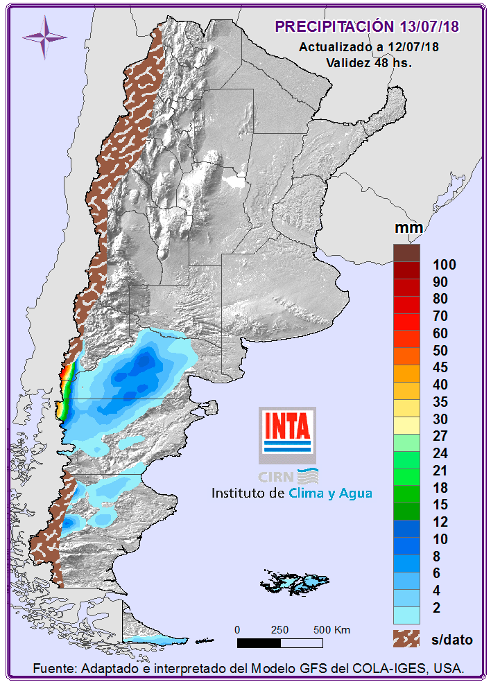 De acuerdo con el último informe del Instituto de Clima y Agua del INTA Castelar, en el norte del país las condiciones del tiempo se mantendrán estables durante el fin de semana. En el centro se esperan algunos chaparrones sobre la costa sur de Buenos Aires y la región cuyana. En cuanto a la Patagonia, se espera tiempo inestable con probables precipitaciones sobre el norte de la región. Las precipitaciones generalizadas podrían retornar a partir del miércoles.