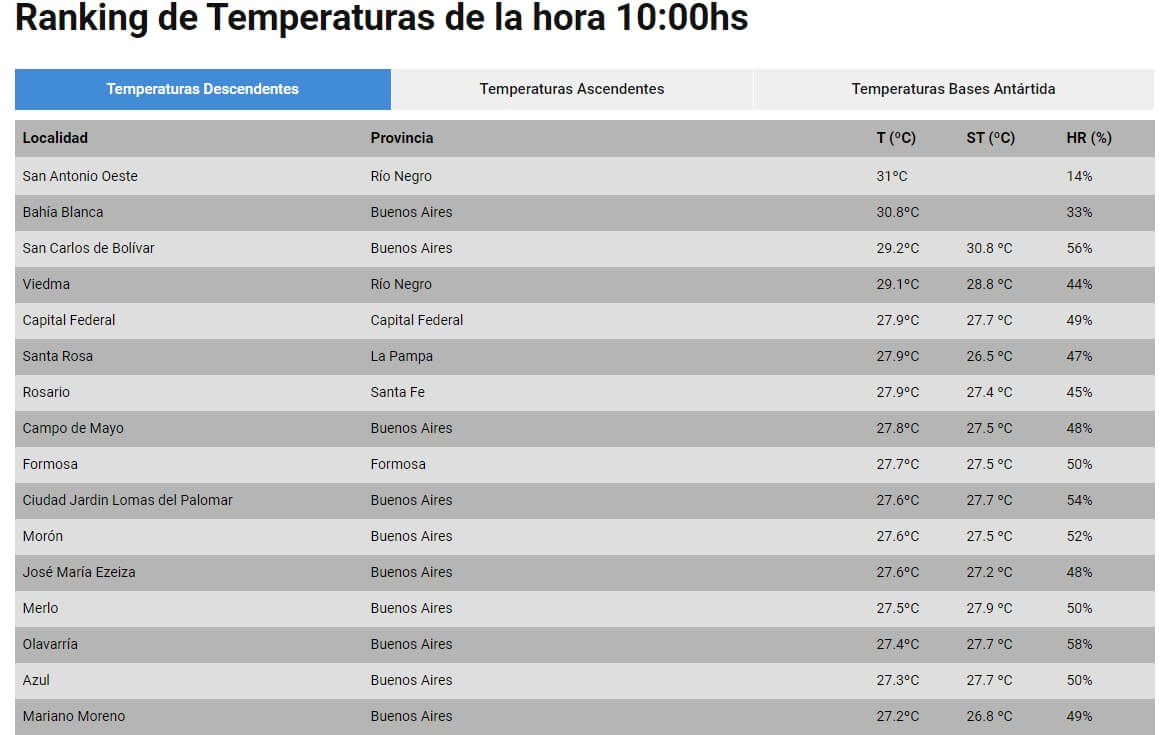 “Es de destacar que, sobre el este de la provincia de Buenos Aires, incluída la Ciudad Autónoma de Buenos Aires y el sudeste de Entre Ríos , las temperaturas máximas pueden verse atenuadas por el efecto del viento del sector este y los fenómenos de brisa, esperándose valores entre 32°C y 35°C“, informó el organismo.